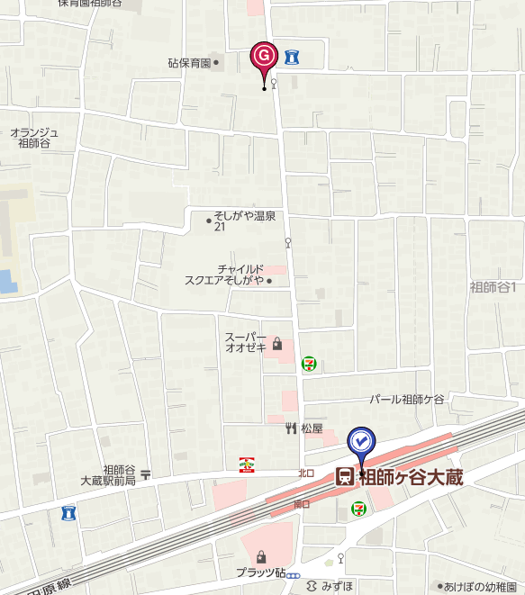 小田急線「祖師ケ谷大蔵」駅から約500m 徒歩8分ほどです