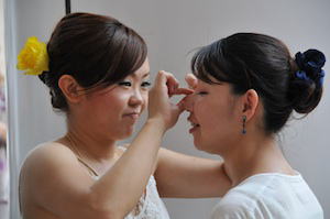 朝のメイクタイム・・・ 「つけまつげって苦手〜」 |